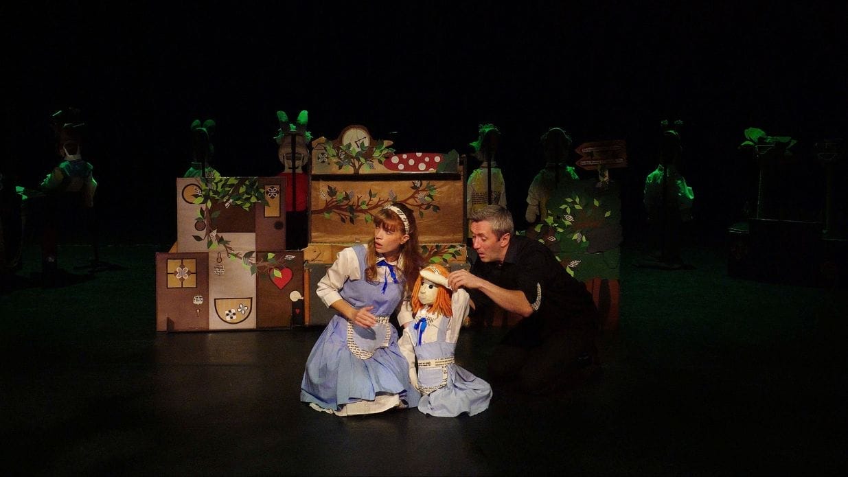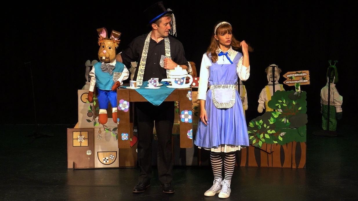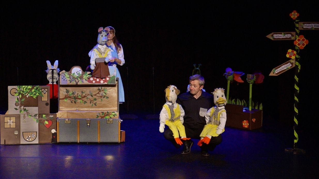 Alice’s Adventures in Wonderland is brought to life by just two performers, a dozen colourful handmade puppets and a beautiful set that unfolds from a vintage trunk. Follow Alice on her remarkable journey, from her fleeting encounters with the White Rabbit to her eventual showdown with the crazed Queen of Hearts. A confrontational Caterpillar, Ukelele twanging Tweedle twins and an array of others pop up along the way, before Alice comes face to face with her own imagination and perhaps the author of her dreams.