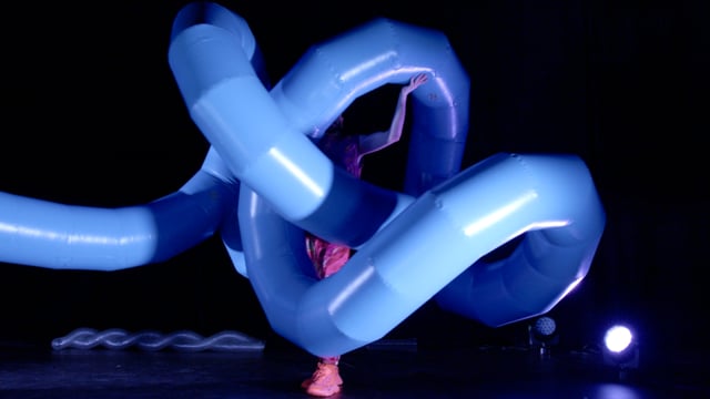 Surrounded by a huge inflatable blue structure and accompanied by electro beats composed of distorted rollercoaster sounds, Wes Peden shares his cutting-edge tricks inspired by corkscrews, adrenalin, and high-tech seatbelts.